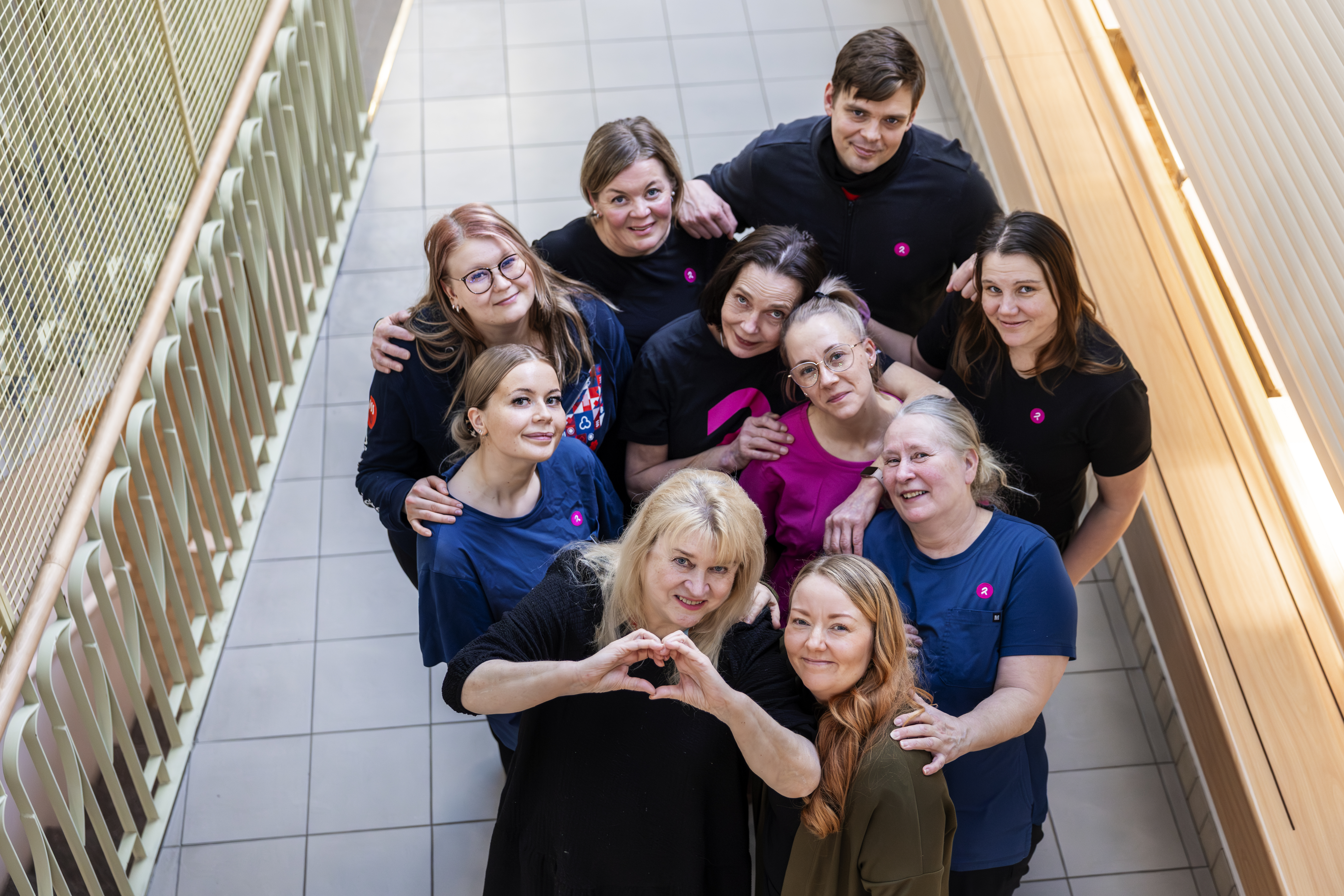 Luottamus, kannustus ja lämpö. Ilo ja huumorintaju. Luovuus. Myönteisiä sanoja pulppuaa, kun ryhmäkuvaan kokoontuneilta Teemunkodin työntekijöiltä kysyy, millaisia asioita omasta tiimistä nousee mieleen.